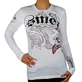 Christian Audigier is the ultimate in high fashion, urban street wear! His SMET line is designed with Rock and Roll in mind, particularly French Rock and Roll legend and partner in design, Johnny Hallyday. The catch phrase of SMET- "Born on the Street"- was developed to pay homage to Hallyday's roots, as well as a metaphor for the origin of his innovative ideas.This long sleeve shirt features floral print, tattoo inspired graphics, and signature logos. Size XS= Chest 24", Length 29", Sleeve Length 24.5". Size S= Chest 26", Length 29", Sleeve Length 25.5". Size M= Chest 26", Length 31", Sleeve Length 26". Size L= Chest 28", Length 31", Sleeve Length 27" Style# C8YCAIAB Read more
